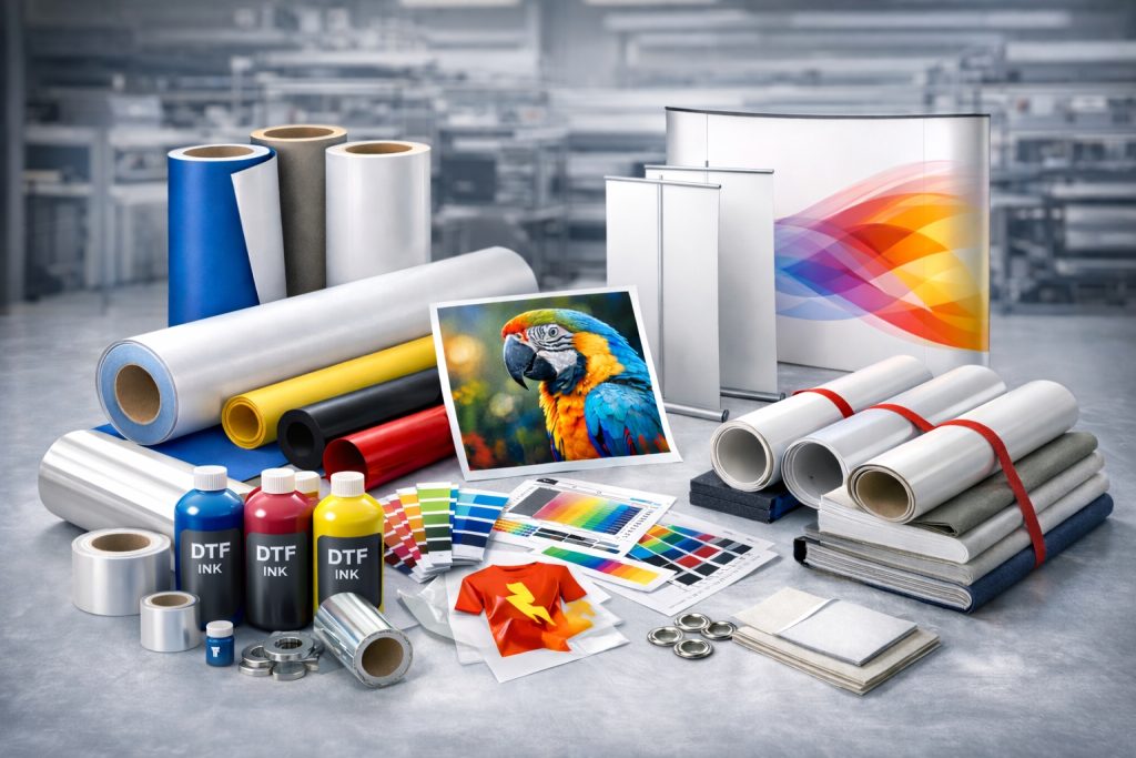 Carte blue back e white back, carte fotografiche professionali, banner, vinili adesivi, poliesteri, materiali termo-trasferibili e soluzioni DTF, canvas, PVC/PET per roll-up e pop-up, tessuti tecnici per comunicazione visiva e moda. Ogni prodotto è scelto per offrire performance elevate con tutte le tecnologie di stampa più diffuse.